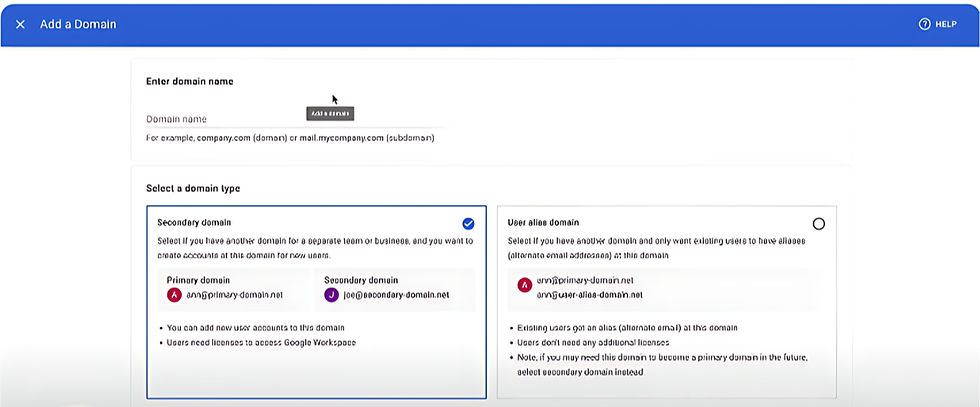 Choose a Domain: You can either use an existing domain you own or purchase a new domain through Google. A domain is necessary for creating your custom email addresses (e.g., info@yourbusiness.com).