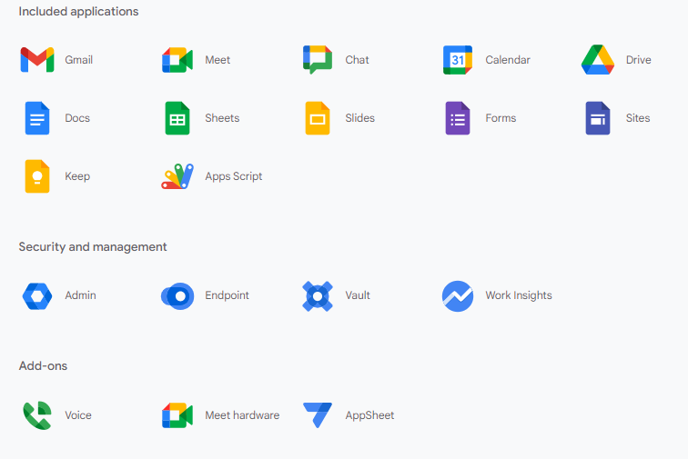 Collaboration and Productivity Tools: Google Workspace includes a suite of productivity tools like Google Docs, Google Sheets, Google Slides, Google Meet, and Google Calendar. These tools enable teams to collaborate in real-time, improving efficiency and productivity.