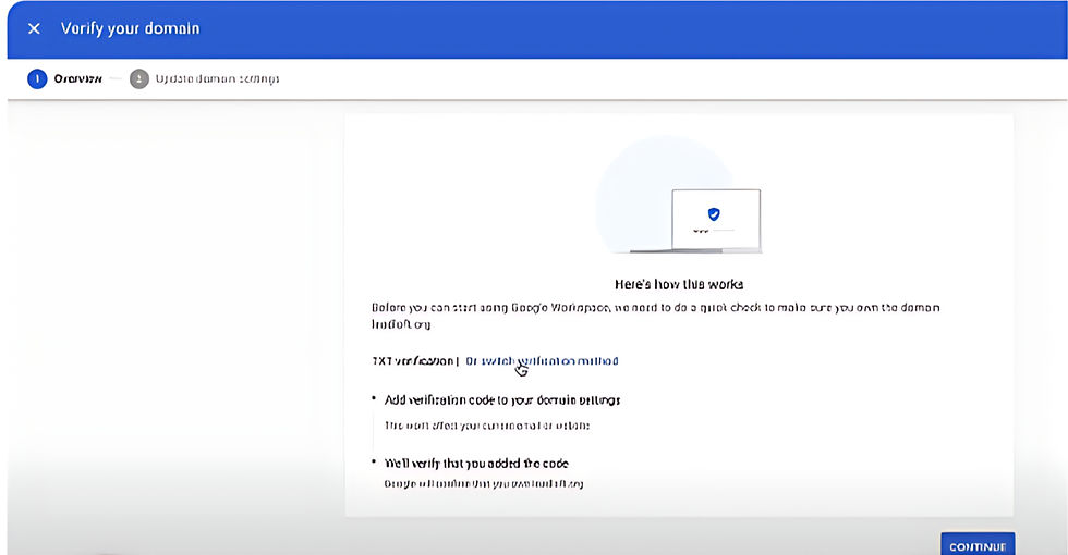 Begin Domain Verification: Follow the setup wizard to start the domain verification process.